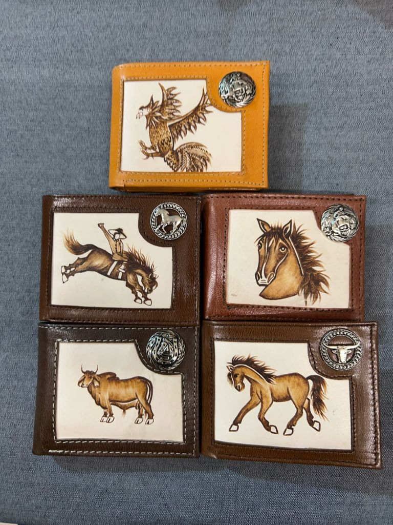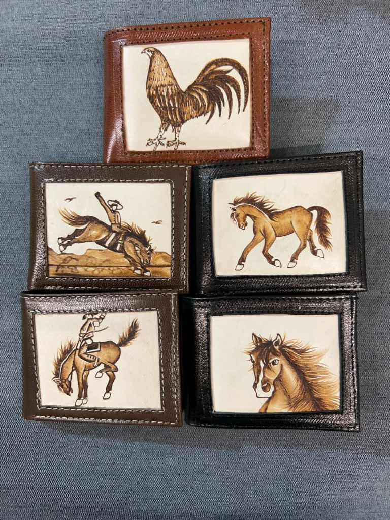 ACCESORIOS DE PIEL, SINTETICOS Y MAS Fundas bordada $100 Dagas $45 Balero o bat $16 Cartera eco $60 Funda cel vaqueta $115 Funda de navaja $40 Cuartitas $30 y $28 Funda bordada $95 Tequilero $30 Portabote $135 Plantillas $18 Resortera $50 Monedero gamuza $25 Botella $45 Pachuquito $21 Cartera tejida $140 Virgen y san Judas $16 Fundas doble a mano$295 Portallaves $45 Cartera bifold $40 Cartera pirograbada c/concho $115 Cartera pirograbada $110 Sombrerito $16 MONEDERO VAQUETA $30 Plumas para sombrero $15 Pregunta por mas estilos 6681520272 Huarachería Andrade